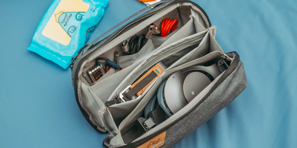 A reusable water bottle with a built-in straw keeps hydration simple and accessible. For organization, use small zippered pouches or mesh bags to separate essentials like gloves, hand sanitizer, and personal items.
