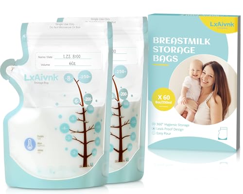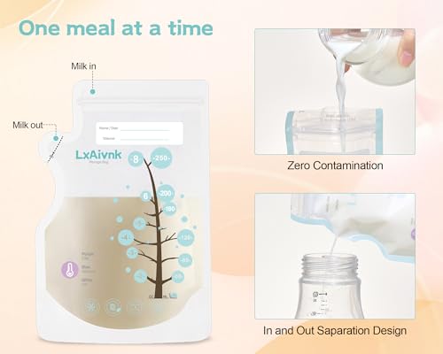 Leakproof and Durable milk storage bags breastmilk:Tired of dealing with thin, flimsy breast milk storage bags freezer that leak or tear? LXAIVNK upgraded breast milk storage freezer bags are crafted with thickened, durable material and feature double-sealed edges to lock out air, keeping mom precious breastmilk fresh and secure.LXAIVNK breast milk storage containers for fridge let you Say goodbye to spills and hello to peace of mind!