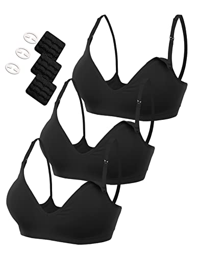 HOFISH Maternity Nursing Bras for Breastfeeding, 3 Pack Pregnancy Deep V Neck Wireless Bra with Extenders & Clips