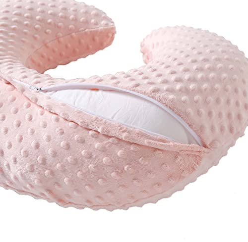Nursing Pillow and Positioner, Breastfeeding, Bottle Feeding, Baby Sitting Support with Removable Ultra Soft Cover, Tummy Time Support for Baby Boys and Girls (Lightpink)