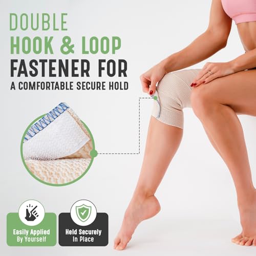 Premium Elastic Bandage Wrap (4″ 2 Pack) – Hook & Loop Fasteners at Both Ends – Latex Free Hypoallergenic Compression Roll – Reusable Bandages for Waist, Legs, Elbow & Knee Wrap