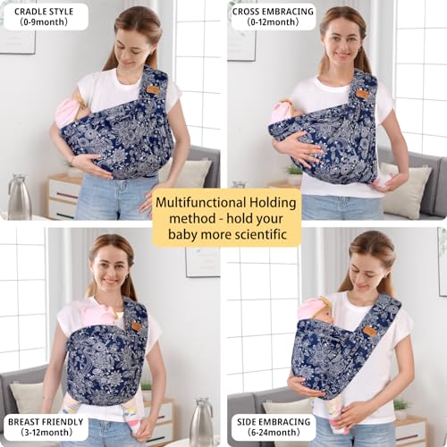 Baby Sling Carrier Newborn, Adjustable Easy Wearing Baby Nursing Warp Sling, New Mom Dad Soft Cotton Baby Front Holder Carrier for Infant Toddler Life Travel Essential Gifts (Blue)
