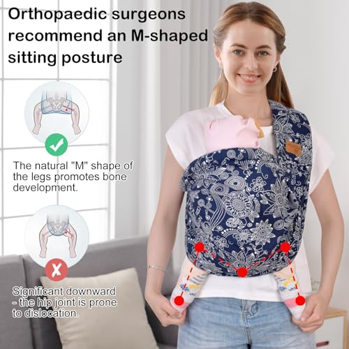 Soft and comfortable: The baby carrier from newborn is made from 100% high-quality cotton. It is soft, skin-friendly and breathable, suitable for all seasons.The baby wrap carrier is soft and stretchy. Perfect for moisture wicking, absorbs sweat for extra comfort.
