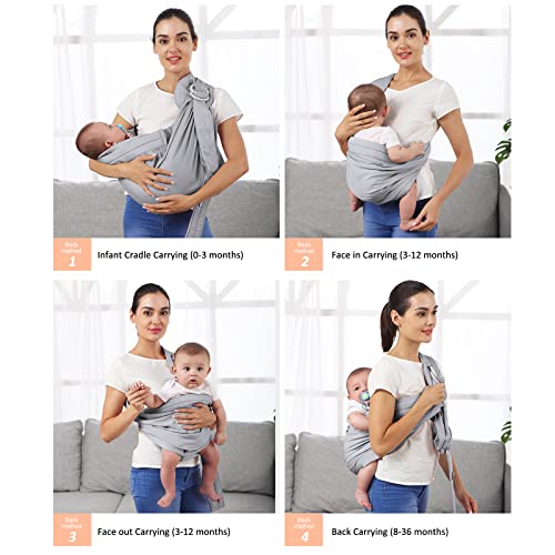 Ring Sling Baby Carrier, Baby Carrier Newborn to Toddler Sling,Ergonomic Comfortable Baby Sling for Infant Babies Newborns, Soft Adjustable Baby Ring Sling for Outside Walking Traveling (Grey)