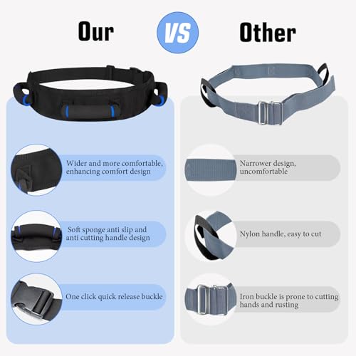Gait Belt with Handles, Transfer Belt for Elderly, Patient Gait Belts, Transfer Belt Assist, Gait Belts for Seniors, Upgraded Using Rubber Handles (Blue)
