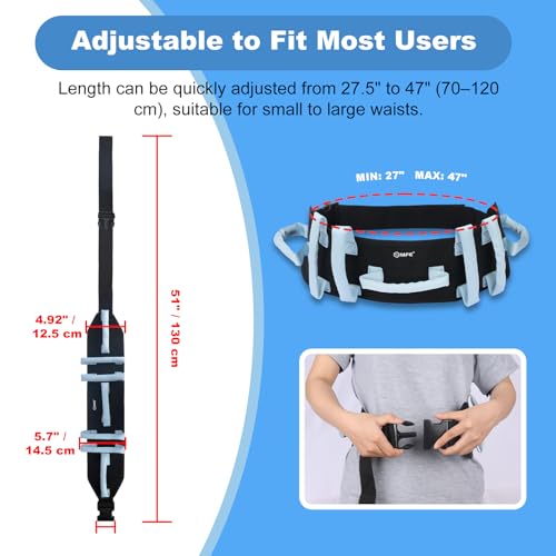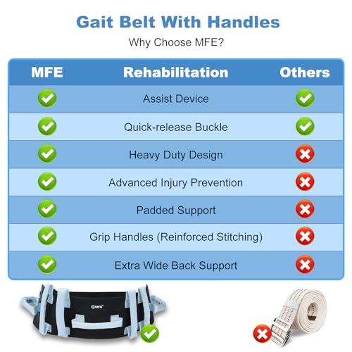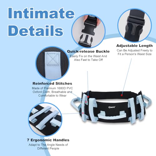 MFE Gait Belt, Anti-Slip Transfer and Walking Assist Belt with 7 Handles and Quaick – Release Buckle, Safety Lift Aid for Seniors, Elderly, Caregivers, Nurses, Therapists, Blue