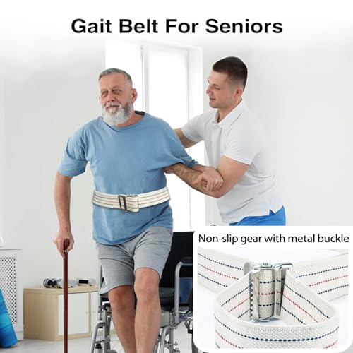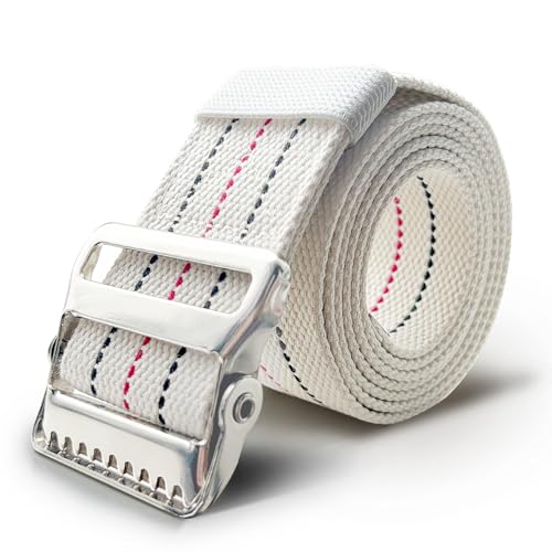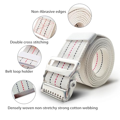 【Sturdy and Durable】The gait belt is made of Double-stitched polyester-cotton webbing + premium metal buckle with anti-slip locking teeth. These gait belts for seniors are soft, lightweight, and durable, which withstand the rigors of daily use at any hospital, nursing home, health care facility, or home by nurses, physical therapists, medical professionals, and at-home caregivers. 2 inch wide heavy duty 100% Cotton webbing construction, durable and comfortable touch for every day use