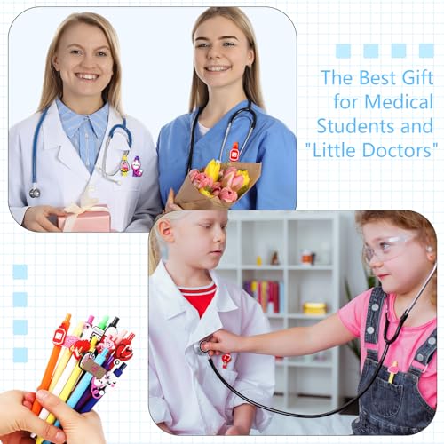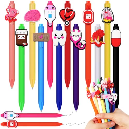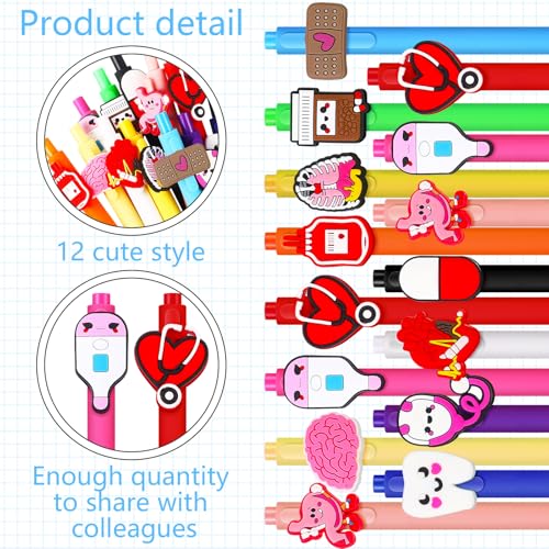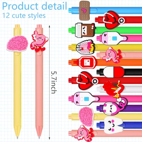 Charming and Interesting Appearance: our medical assistant gifts feature an enchanting display of 12 different shell colors (4 in each) and cute cartoon accessories (12 styles), including stethoscope, teeth, infusion bottle and so on, exuding a beautiful rainbow like aura; Brighten up your stationery collection with these vibrant pens that make fashionable statements, not just simple writing tools, these pens will enhance your desk’s aesthetics and inspire your writing activities