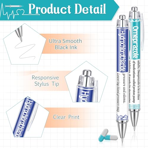 Kosiz 48 Pcs Pharmacy Pens Nurse Ballpoint Pens Bulk Black Ink Nursing Week Gifts for Women Student School Medical Assistant Pharmacist Technician Accessories Supplies