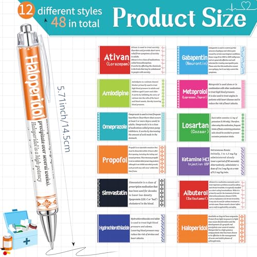Pharmacy Pens Bulk: you will get 48 pieces of pharmacy ballpoint pens in 12 different styles, the sufficient quantity and rich designs can meet your daily use and share needs