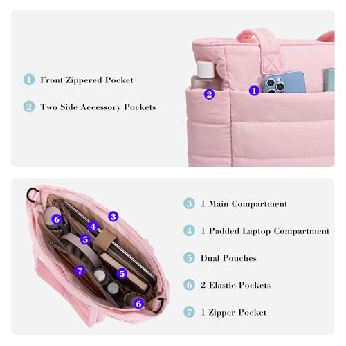 AOCINA Puffy Tote Bag for Women Quilted Work Bag Nurse Bags Women’s Handbags for Travel