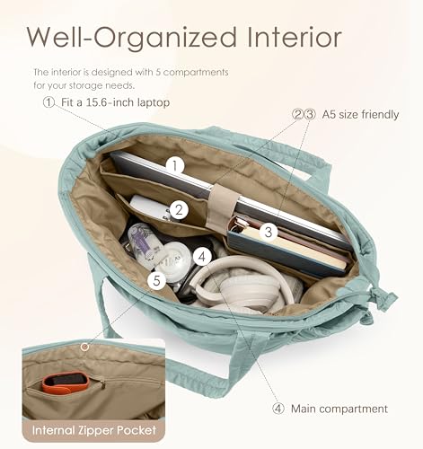 Tote Bag for Women Puffy Work Bags for Women with Zipper Lightweight Quilted Puffer Tote Bag for Travel, Teacher, Nurse