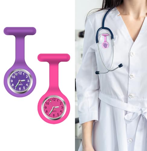 3Pack Retractable Nurse Watch for Nurses Doctors Cute Flowers Clip-on Hanging Lapel NurseWatch with Second Hand,Silicone Cover Brooch Fob Pocket Badge Reel