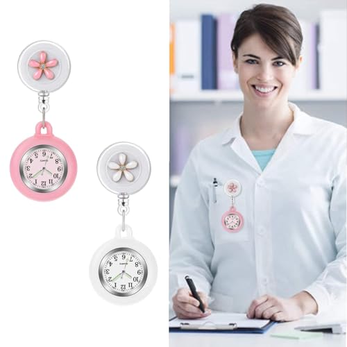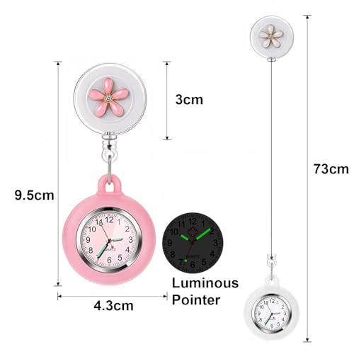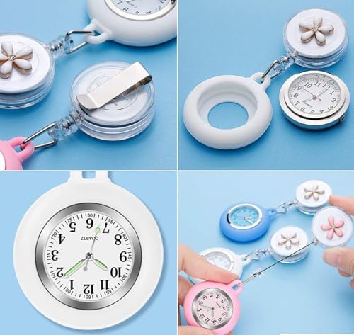 3X Retractable Nurse Watch for Nurses Doctors, Clip-on Hanging Lapel Nurse Watch Silicone Cover Brooch Fob Pocket Watch Badge Reel