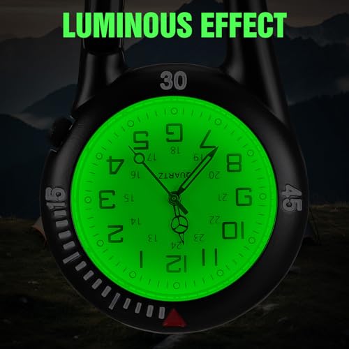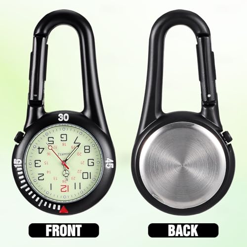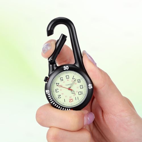 Clip-on Light Alloy Unisex Backpack Buckle Belt fob Watch Black with White dial Ideal for Doctors Climbing (Black)