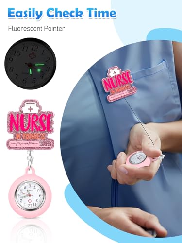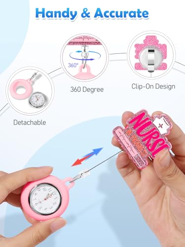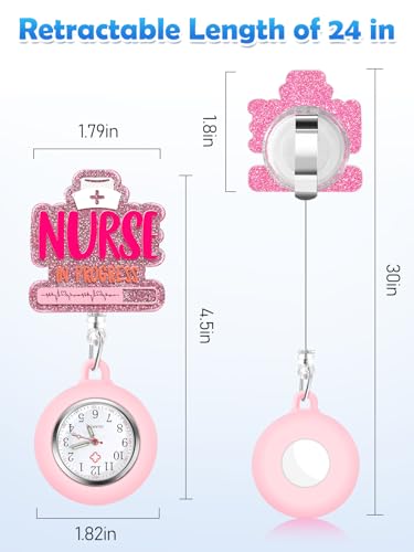 Plifal Nurse Pocket Watch Nursing Badge Fob with Second Hand – Retractable Clip On Clock with Secondhand for Medical Staff Women Men
