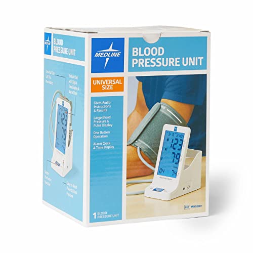 Medline Elite Bedside Talking Automatic Digital Blood Pressure Monitor with Universal Upper Arm Cuff (fits arms 22-42 cm), AC Adapter and Batteries, Alarm and Extra Large Backlit Display