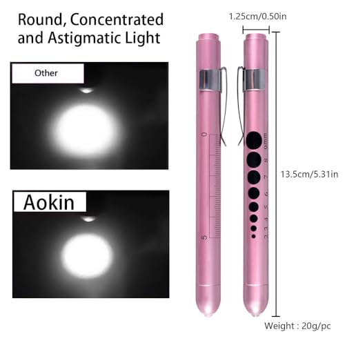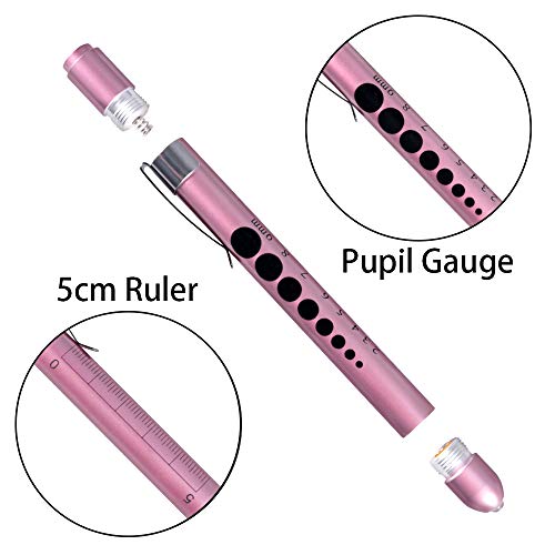 Aokin Medical Pen Light for Nurse Doctor, Reusable LED Medical Penlight Flashlight with Pupil Gauge and Ruler, White Light, Rose Gold