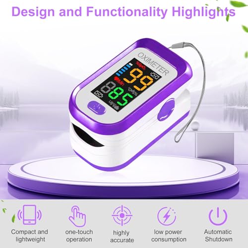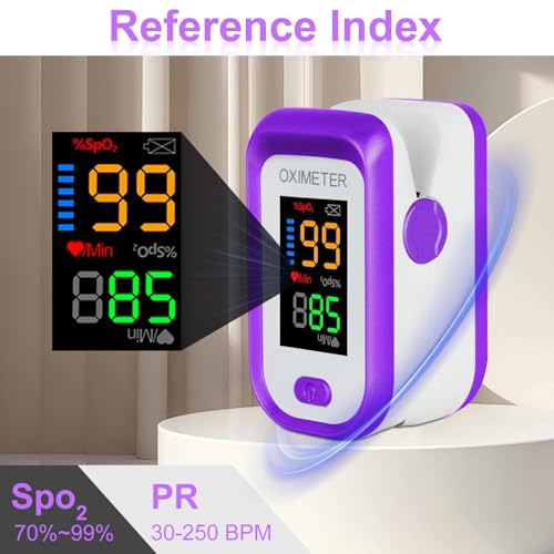 Pulse Oximeter Fingertip, Pulse OX with Large LED Display, Oximeter, Pulse Oximeter, Fingertip Pulse Oximetr, Oximeter with AAA Battery Lanyard (Purple)