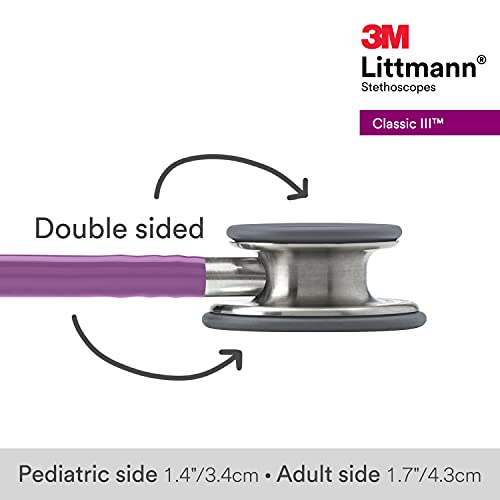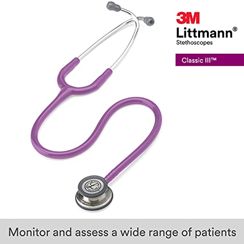3M Littmann Classic III Monitoring Stethoscope, 5832, More Than 2X as Loud, Weighs Less, Stainless Steel Chestpiece, 27″ Lavender Tube