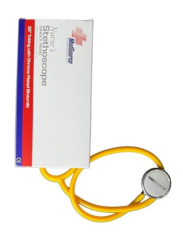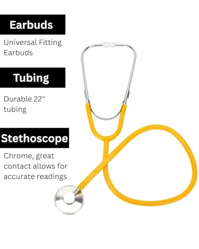 Stethoscope – 22” Long Tubing, Lightweight Stethoscope with Aluminum Chestpiece – Single Head, Acoustic Sound Yellow Doctors, Nurses, Students, Medical and Home Use