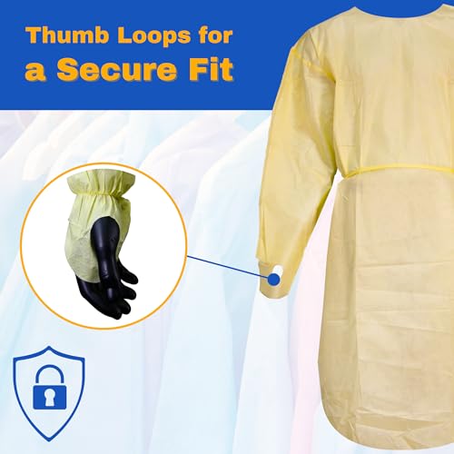 Frontline Disposable Isolation Gowns (10 Pack) Hospital Gowns for Women and Men PPE Medical Equipment Yellow Disposable Medical Gown
