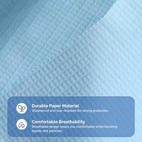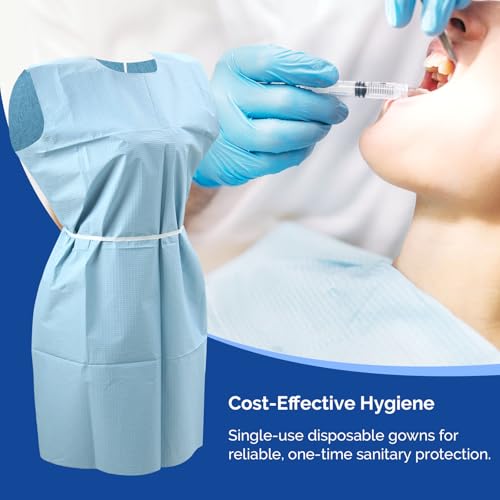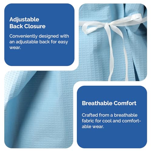 JMU 50 Pcs Disposable Patient Gown 30″ x 42″, 3-Ply Medical Patient Gowns for Exam, Front or Back Opening, Blue