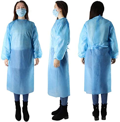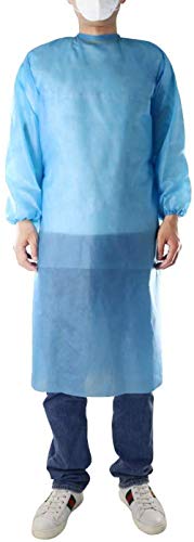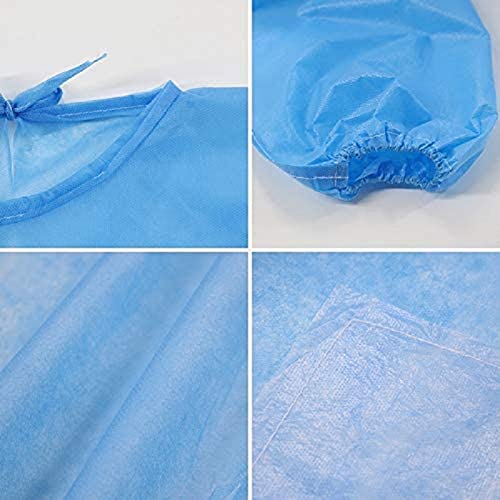 Pack of 10 Disposable Isolation Gowns with Elastic Cuff, Knitted Cuff, Late x- Free, Non-Woven, FluidResistant, Dental, Hospital, Industries, ONE SIZE FITS ALL(10 PCS=1 Bag), BLUE