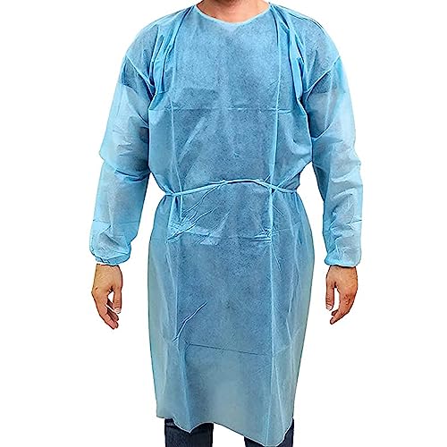 Isolation Gowns are made of high-quality spunbonded material and are Latex Free. Elastic cuffs to provide a snug fit under gloves and are full length which provides maximum coverage. Polyprepolyne 40 Grams Weight each gown. Spunbond Polypropylene (SPP) PROTECTION LEVEL OF GOWN: Fluid Resistant CLOSURE TYPE: Side Tie NECK CLOSURE: Secure neck ties NECK STYLE: Tie Neck CUFF STYLE: Elastic cuff BACK STYLE: Full Back Disposable. Reliable Protection: Our gowns are made with elastic cuff sleeves to provide a snug fit under gloves. Tie back closure around the neck and waist with sewn seams to provide superior strength and protection. Great for Doctors, Medical Laboratory’s, Crime Scenes and Forensics, Dentists, Pharmacy, Science Projects at College Campus, Painting and Kitchen use. Made of non-woven material(40 gram PP), Heavyweight breathable, latex free. Tie Back Closure, Single Use. Our isolation gowns are made of high-quality spunbonded material, Offers economical, comfortable and reliable protection