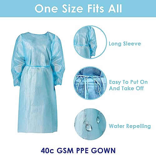 Personal Touch 20 Pack Disposable Isolation Gowns – Blue Level 2 SMS 40gsm Non-Woven Material – PPE Gowns Disposable for Dental, Medical Use, Fluid-Resistant and Latex-Free Gowns, Universal Size