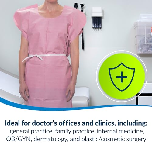 TIDI Choice Gowns are open-back, waist-tie, short-sleeve medical gowns designed for patient comfort and coverage. The ample fit of these 30” x 42”, front- or back-opening exam gowns offers functional modesty that allows access for examinations and procedures. An economical form of protection ideal for a broad range of doctor’s offices and clinics, these disposable gowns provide single-use hygienic security. The tissue/poly/tissue construction of the medical exam gowns features an embossed poly layer for extra strength. The exam gowns also have a poly waist-tie that stretches for desired length. Quantity: One (1) pack of 50 mauve, open-back, waist-tie, short-sleeve, latex-free medical patient gowns.