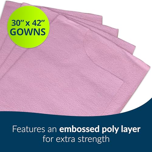 TIDI Choice Gowns, Mauve (Pack of 50) ― Tissue/Poly/Tissue ― Open-Back, Waist-Tie, Short-Sleeve Medical Gowns ― Disposable Exam Gowns ― Standard Size 30” x 42” ― Latex-Free Medical Supplies (910536)