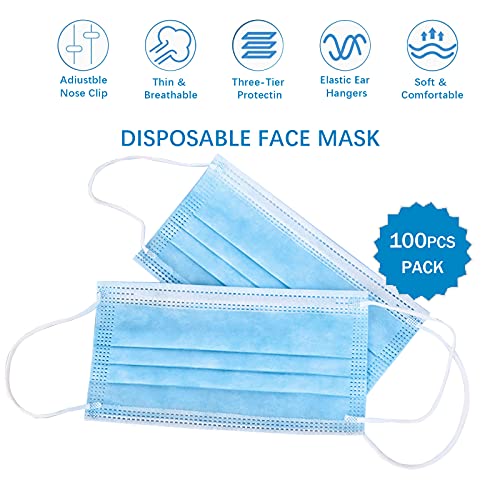 DC-BEAUTIFUL 100 Pcs Blue Disposable 3 Ply Earloop Face Masks,Fit for Adults