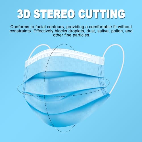 Disposable Face Masks, 100PCS 3 Ply Protection Mask (Blue)