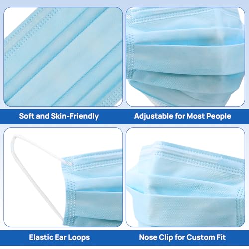 Comfortable Fit: Disposable masks come with an adjustable nose bridge wire and elastic earloops to provide a comfortable and secure fit, suitable for different face shapes