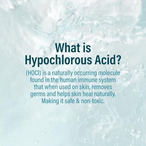 HYPOCHLOROUS ACID: (HOCl) is a naturally occurring molecule found in the human immune system that when used on skin, it removes germs and helps skin heal naturally. Making it safe & non-toxic