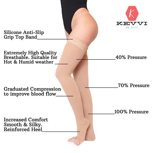 KEVVI (S to 5XL -Thigh High Compression Stockings Women & Men 20-30 mmHg,Ted Hose Open Toe, Support Hose, Support Stockings