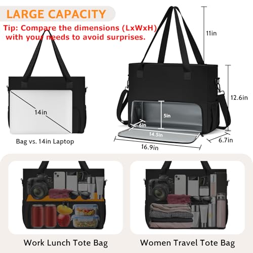 AHHZOOPLL 2-in-1 Tote – Where Efficiency Meets Elegance Engineered for women who hustle. Work Smarter: Insulated compartment (14.5″x6″x5″) keeps meals fresh Padded sleeve fits 15.6″ laptops securely Water-repellent fabric resists coffee spills Organized Bliss: Multiple dedicated pockets help busy moms stay effortlessly organized. We design bags to simplify your life, never complicate it.
