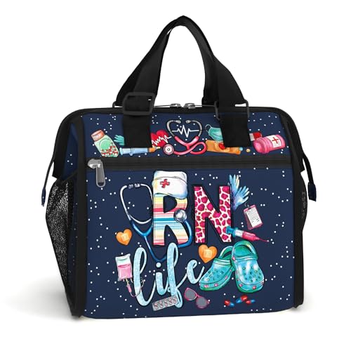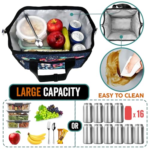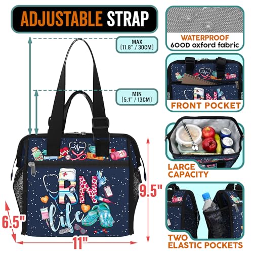 84hoods Large Lunch Box for Women. Insulated Lunch Bag for Work Office Travel Picnic with Adjustable Strap. Registered Nurse Gift. RN Life Galaxy.
