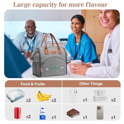 LOKASS Nurse Lunch Bag for Women, Embroidered Lunch Box with Special Nursing Design, Insulated Lunch Tote Ideal for Nurse Gifts, Neutral Grey