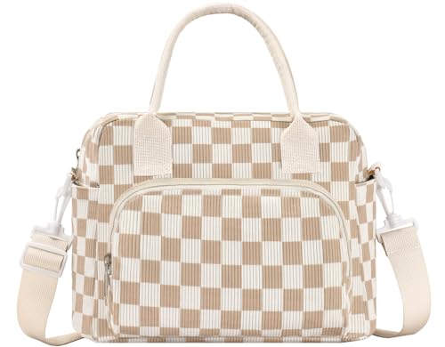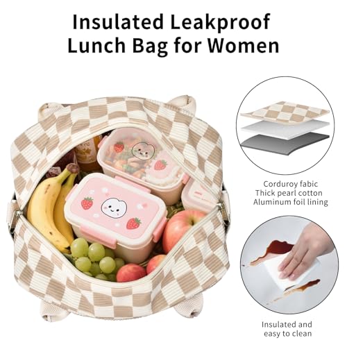 Lunch Bag Women Lunch Box for Women Adult Cute Insulated Lunch Bag Lager Cooler Lunch Tote Bags for Work Picnic (Beige-Brown Plaid)