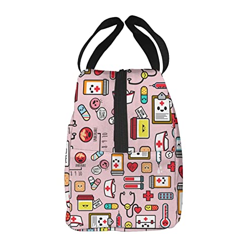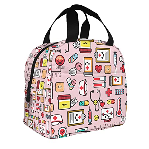 Nurse Theme Lunch Bag for Women Insulated Tote Bag Reusable Cooler Lunch Box for Work Picnic Travel, One Size