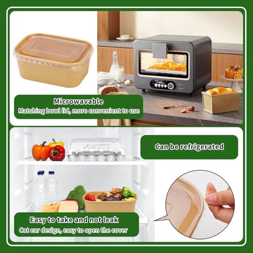 50 ​Pack 29 oz Paper Bowls, Disposable Food Containers with Lids, Rectangular Disposable Bowls with Lids, Disposable Salad Bowls for Diet Salad, Ice Cream, Yogurt, Party Food
