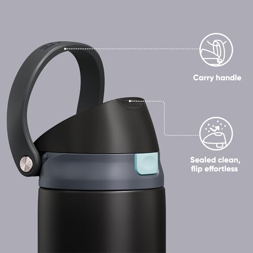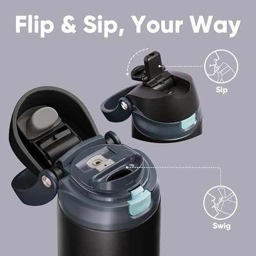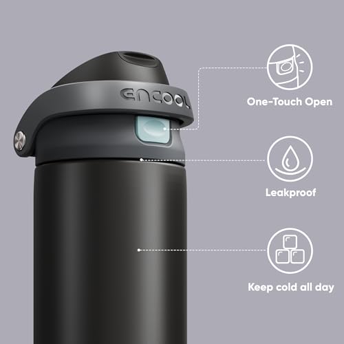 Encool Insulated Stainless Steel Water Bottle with Straw – Leak Proof Sports Water Bottle for School, Travel, Keeps Cold All Day, One-Touch Flip Lid, BPA-Free, 24 oz, Charcoal Gray