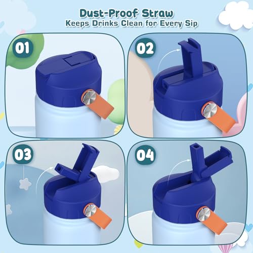Dust-proof Design: This kids water bottle comes with a dust-proof lid that is not only easy to open and close but also effectively prevents external dust from entering the straw and the inside of the cup, keeping every sip your child takes clean and hygienic.