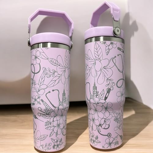 Nurse appreciation Gift Tumbler for nurse Insulated tumbler 30oz water bottle No spill water bottle Travel bottle Medical theme water bottle (30oz Lilac(64)-D29)