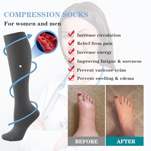 6 Pairs Compression Socks for Women and Men Circulation, Best Support Socks for Athletic Running,Hiking,Nurse,Recovery