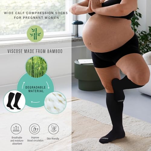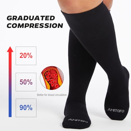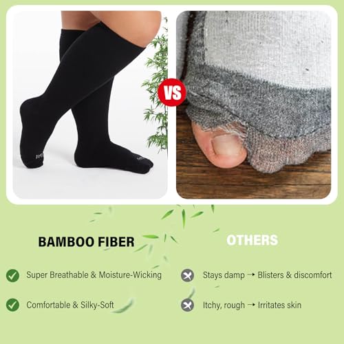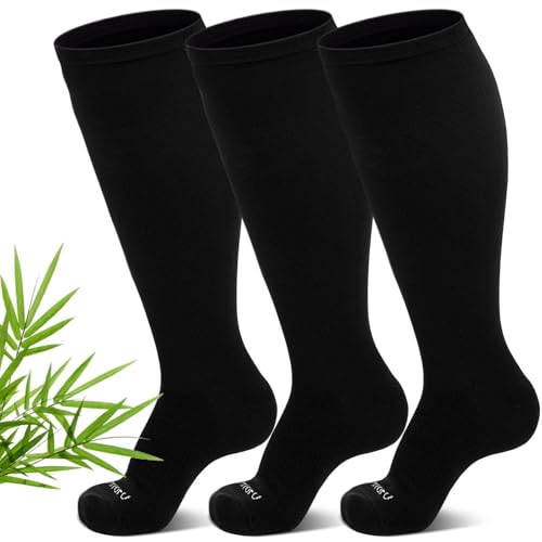 CaiDieNu Bamboo Viscose Compression Socks: Wide Calf Plus Size Compression Socks for Women and Men Nurses Travel Pregnant