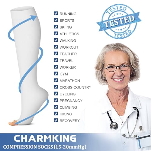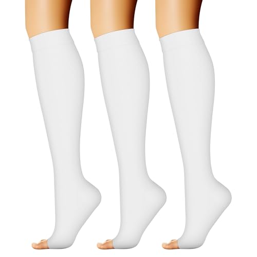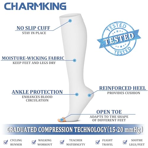 CHARMKING 3 Pairs Open Toe Compression Socks for Women & Men Circulation 15-20 mmHg is Best Support for All Day Wear