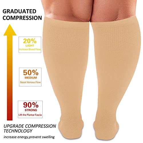 Diu Life 3 Pairs Plus Size Compression Socks for Women and Men Wide Calf Extra Knee High Support for Circulation
